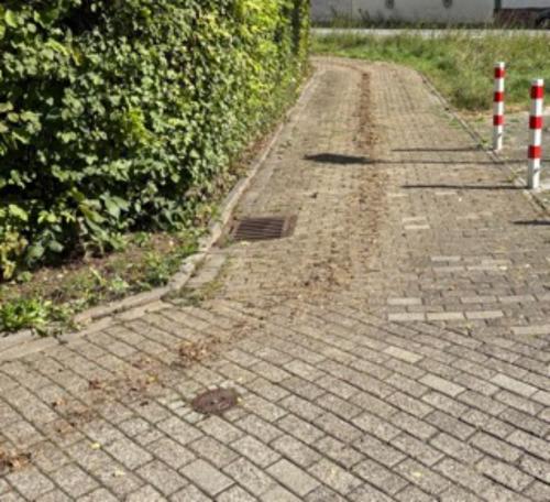 Scheinbar wurde der Gehweg zur B3 mit einer Kehrmaschine nicht komplett gereinigt.